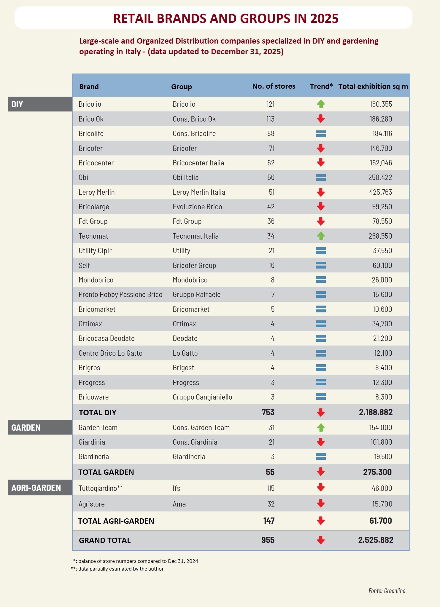 The following section presents the second installment of the 2025 Italian DIY-garden monitoring, focusing on brand affiliations, store formats, and retail chains.