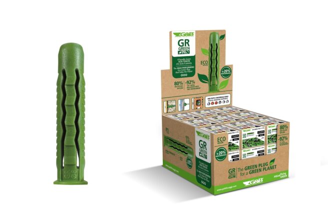 The packaging has also been designed using 100% recyclable materials, such as cardboard, with the boxes themselves made from over 30% recycled content. The new GR Green Pro plug is available in Ø6 x 30 mm + CSK screw and Ø8 x 40 mm + CSK screw sizes. It is presented in a practical counter display made entirely of 100% recyclable cardboard, just like the individual packs.