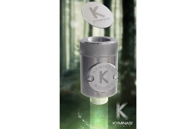 The Kyminasi Booster, applied to the irrigation system, transfers this information to the water, optimizing nutrient absorption and reducing plant stress.
