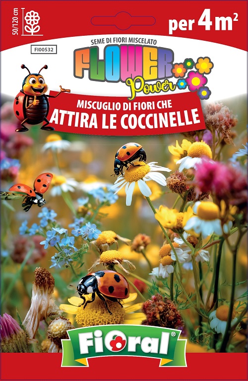 Ladybugs are incredibly useful insects for the ecosystem, as they prey on aphids and other garden pests. A single ladybug can eat up to 50 aphids a day, preserving plant health; their presence helps reduce the need for chemical pesticides. This flower mix is composed of annual varieties that are particularly attractive to these charming little insects.