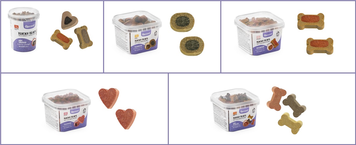 Record (by Rinaldo Franco S.p.A.) expands its collection with Tricky Traps, a semi-moist snack that combines taste and well-being. It is ideal for rewarding your dog during training sessions or as a delicious daily treat.